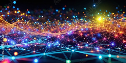 © prapatsorn, Obraz premium Glowing Nodes & Data Flow: Abstract AI Network Technology Background