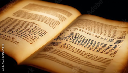 © Galeno, Fototapeta premium glowing open scroll parchment revealing book maccabees book represents themes history revolt faithfulness courage