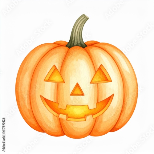 Fototapeta premium Glowing Orange Halloween Pumpkin with Carved Smiling Face and Triangle Eyes