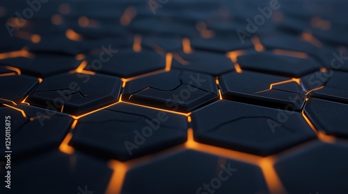 © Yopi, Obraz premium Glowing Orange Hexagon Pattern Dark Backgrounds