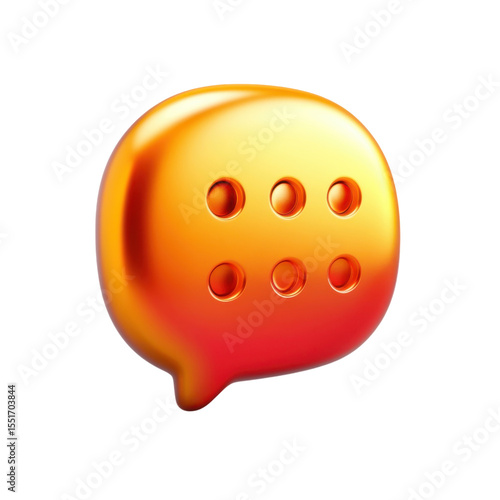 Fototapeta premium Glowing Orange Message Balloon with Typing Indicator Shiny 3D Notification on transparent background