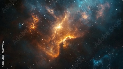Fototapeta premium Glowing Orange Nebula Cloud in Deep Space Background,Generative Ai