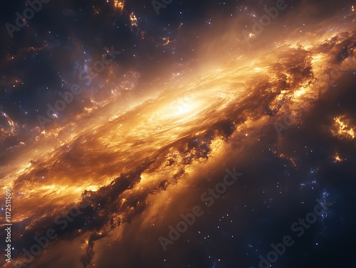 Fototapeta premium Glowing orange spiral galaxy in deep space.