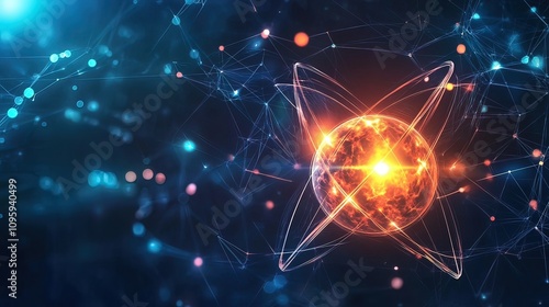 Fototapeta premium Glowing orb within complex network; abstract digital illustration.