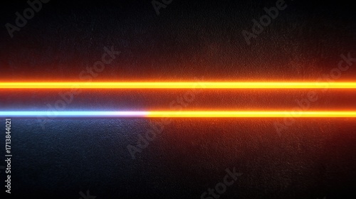 © Nanang, Obraz premium Glowing parallel lines, orange and blue, on dark background