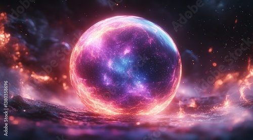 © Ulyana, Fototapeta premium Glowing Particle Sphere in Space Minimalist Digital Art Abstract Illustration Background
