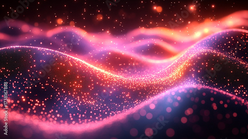 Fototapeta premium Glowing particle waves flow in dark digital space (2)