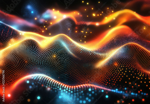 Obraz premium Glowing particles create a mesmerizing landscape of color and light in a...