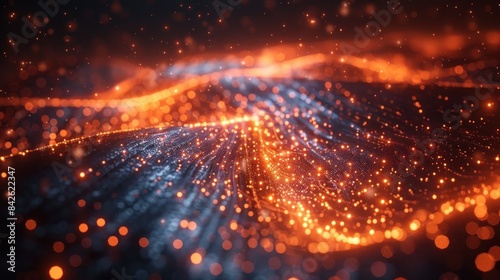 © GOLVR, Obraz premium Glowing Particles Flowing in the Dark