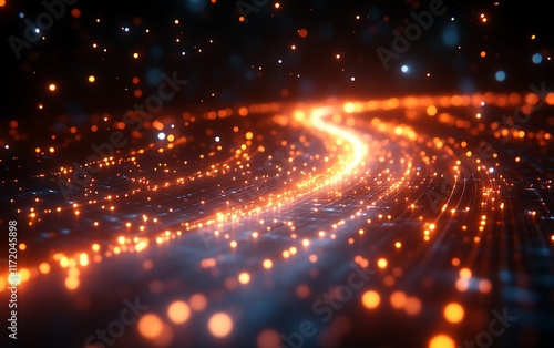 © Mukib, Obraz premium Glowing particles form a swirling path.