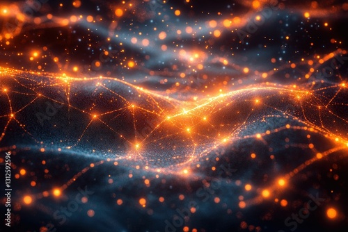 Fototapeta premium Glowing particles form abstract cosmic landscape