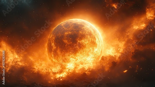 © Emile, Obraz premium glowing particles surrounding around the planet 3d rendering