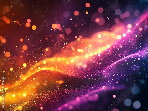 Obraz premium Glowing particles wave, dark space