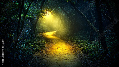 Obraz premium Glowing Path In Dark Mystical Forest