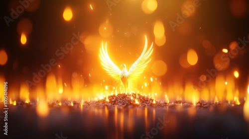 Naklejka premium Glowing Phoenix Emerges from Fiery Ashes