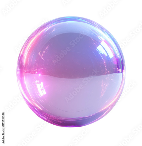 Obraz premium Glowing pink and purple crystal sphere with reflections, futuristic holographic orb design, digital sci-fi technology concept isolated on transparent background