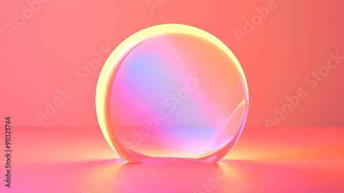 Fototapeta premium Glowing Pink and Purple Transparent Spherical Glass Object on Minimal Background