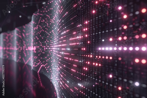 Obraz premium Glowing pink and white lights form an abstract wave of digital data on a...