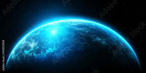 Obraz premium Glowing Planet Earth from Space with Blue Atmospheric Light – Sci-Fi Cosmic...