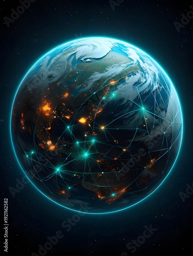 Obraz premium Glowing planet Earth with a network of digital connections highlighting...