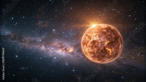Fototapeta premium Glowing Planet in Star Speckled Cosmic Backdrop