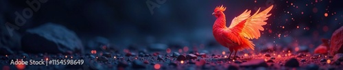 © Prasert, Obraz premium Glowing plumage illuminated against dark space, glowing plumage, space, soft