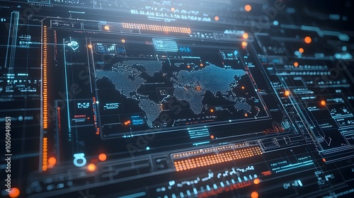 Obraz premium Glowing Polygonal 3D Map with Binary Code Background Showcasing Global...