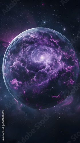 © sungedi, Obraz premium Glowing purple bubbles floating on a dark background
