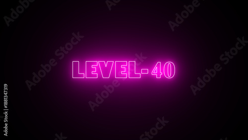 Fototapeta premium Glowing purple color LEVEL 40 text on black background. level 40 lettering...