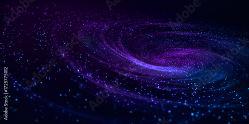 Naklejka premium Glowing purple galaxy swirl with particles in deep space, abstract cosmic...