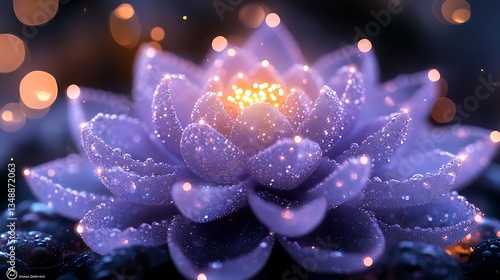 Fototapeta premium Glowing purple lotus flower with sparkling particles.