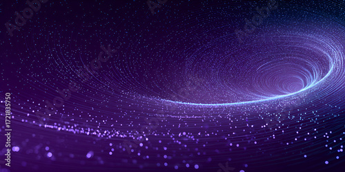 Obraz premium Glowing purple particle vortex expanding into a wide abstract tunnel with digital motion effect