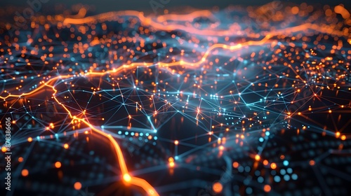 Fototapeta premium Glowing Quantum Computing Network Map Visualizing Global Technology Infrastructure