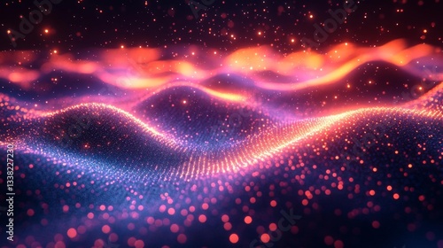 © Alexey, Obraz premium Glowing Quantum Particles Moving Through Cosmic Waves in Space. Generative AI