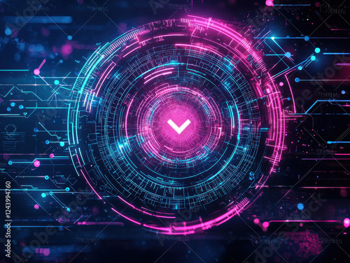 © Leopard, Obraz premium Glowing quantum search interface visualizes Grover's algorithm running through entangled qubits to locate a marked item in a dark quantum environment