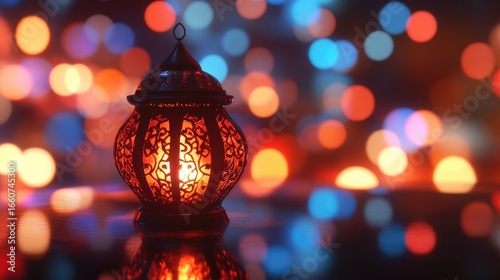 Fototapeta premium Glowing Ramadan Lantern in Festive Lights