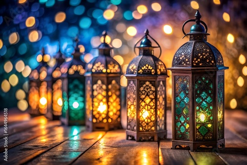 Obraz premium Glowing Ramadan Lanterns: Festive, Warm, and Ornate Moroccan-Style Decor on...