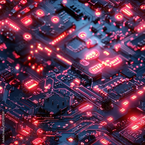 Fototapeta premium Glowing red circuit board futuristic technology abstract