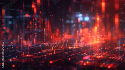 © Sandris Veveris, Naklejka premium Glowing Red Digital Network Cityscape