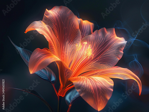 © pavlofox, Obraz premium Glowing Red Flower with Ethereal Glow