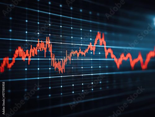 © photobuay, Obraz premium glowing red forex chart with dark background, showcasing financial market trends and data analysis