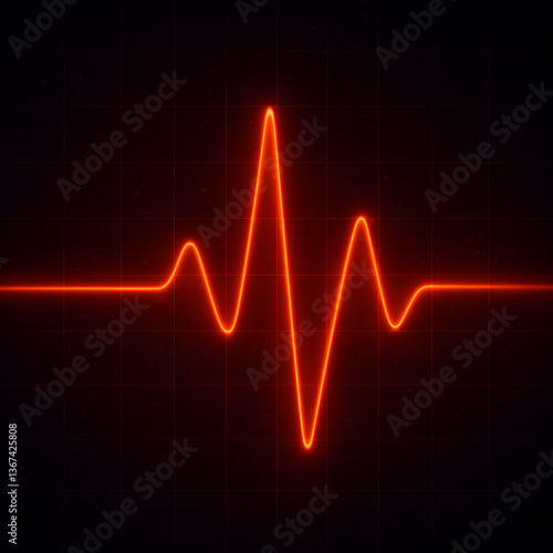 © Sebastian, Naklejka premium Glowing red heartbeat waveform on dark background with grid lines