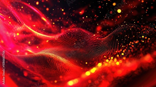 Obraz premium Glowing Red Particles Forming Dynamic Wave Patterns on Black Background,...