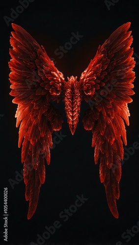 © claudunia, Fototapeta premium Glowing red wings against a dark background, symbolizing power.
