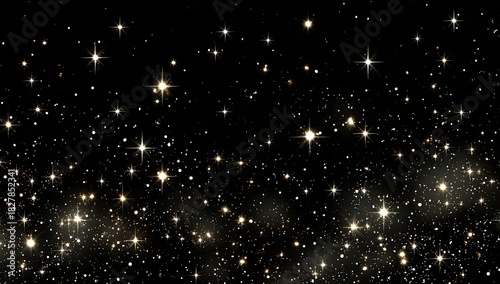 Obraz premium Glowing, shimmering particles sparkle against a black background. Starry,...