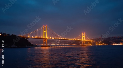 Fototapeta premium Glowing Silhouette of the Bosphorus Bridge at Night