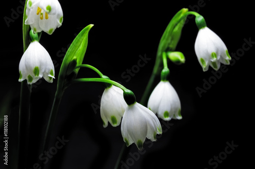 Obraz premium Glowing Snowdrop flowers isolated on black background