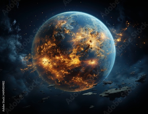 © RWC, Obraz premium Glowing sphere orbits planet Earth in space