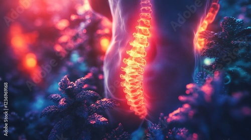 Fototapeta premium Glowing Spine in Enigmatic Forest: A Surreal Digital Art