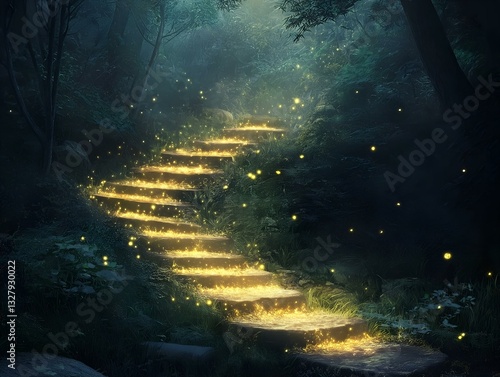 Obraz premium glowing stairway, forest, night, magical